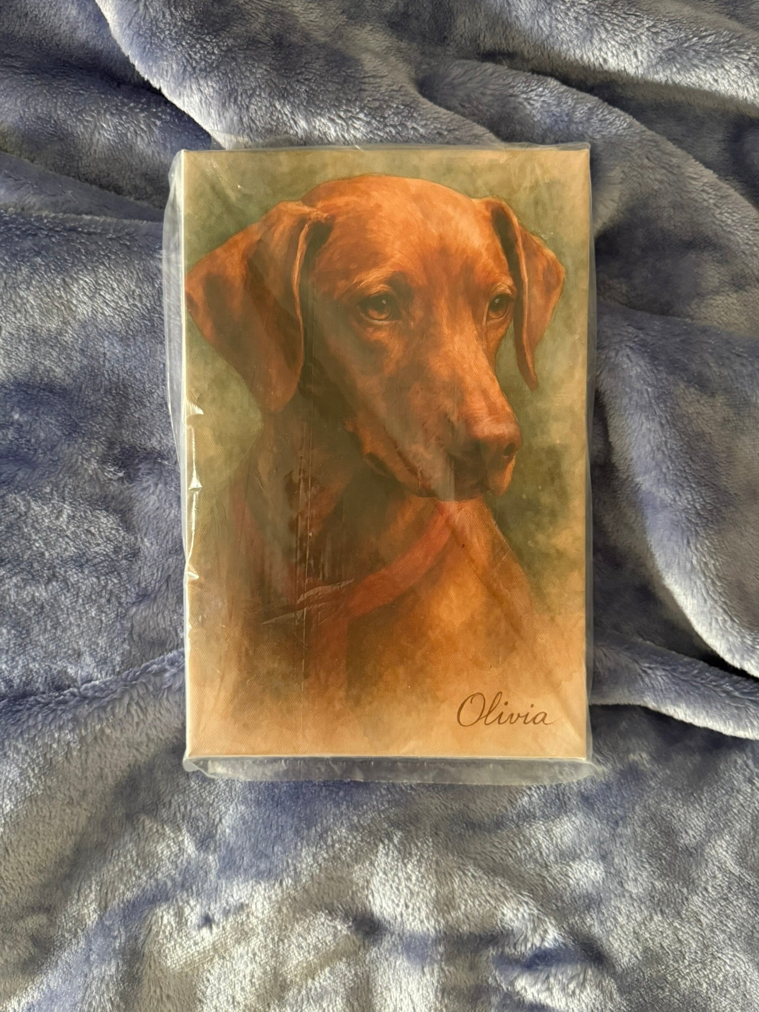 "Desde que Olivia se fue habíamos sentido un vacio enorme, el cuadro es súper realista, es como verla cada día. La verdamos queríamos un cuadro más pequeño que los que están disponibles, despues de hacer la compra escribimos y nos solucionaron rápidamente"
